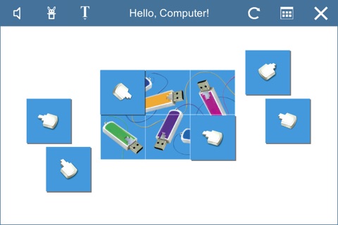 The game is an attempt to get our kids train their memory, imagination, and logical thinking, while operating with familiar computer devices and symbols. After completing each of 12 assignments, a child can check his or her work by turning the cards and assemble an amusing picture, which shows a computer device and its proper name. Lets play and learn!