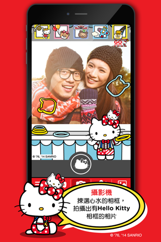 -設有共10款Hello Kitty不同造型的照片相框。一經下載此App,即可在任何地方,使用其中5款相框拍照。而其餘5款隱藏的特別相框,則留待於活動現場,透過以手機素描指定QR Code後,才可被使用。