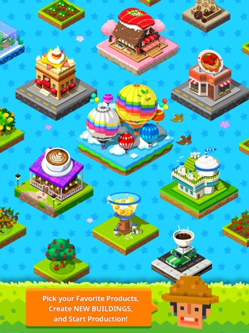 Acquire new plots of land and pick your favorite products. When you create new production buildings, the workers begin production right away. Tapping helps to speed up construction and production for faster progress.