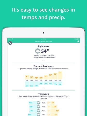 Our gorgeous, information-rich design shows you everything that matters in one simple screen. You’ll see the current conditions and future forecast in an instant.