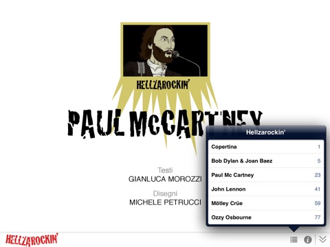 John Lennon, Bob Dylan, Ozzy Osbourne, Paul McCartney e i Mötley Crue sono i mostri sacri del rock protagonisti di Hellzarockin’, scritto dal talento visionario di Gianluca Morozzi (autore di Despero, Blackout, Cicatrici) e disegnate da Michele Petrucci con Sergio Algozzino, Giulia Sagramola, Jacopo Vecchio e Bianca Bagnarelli.