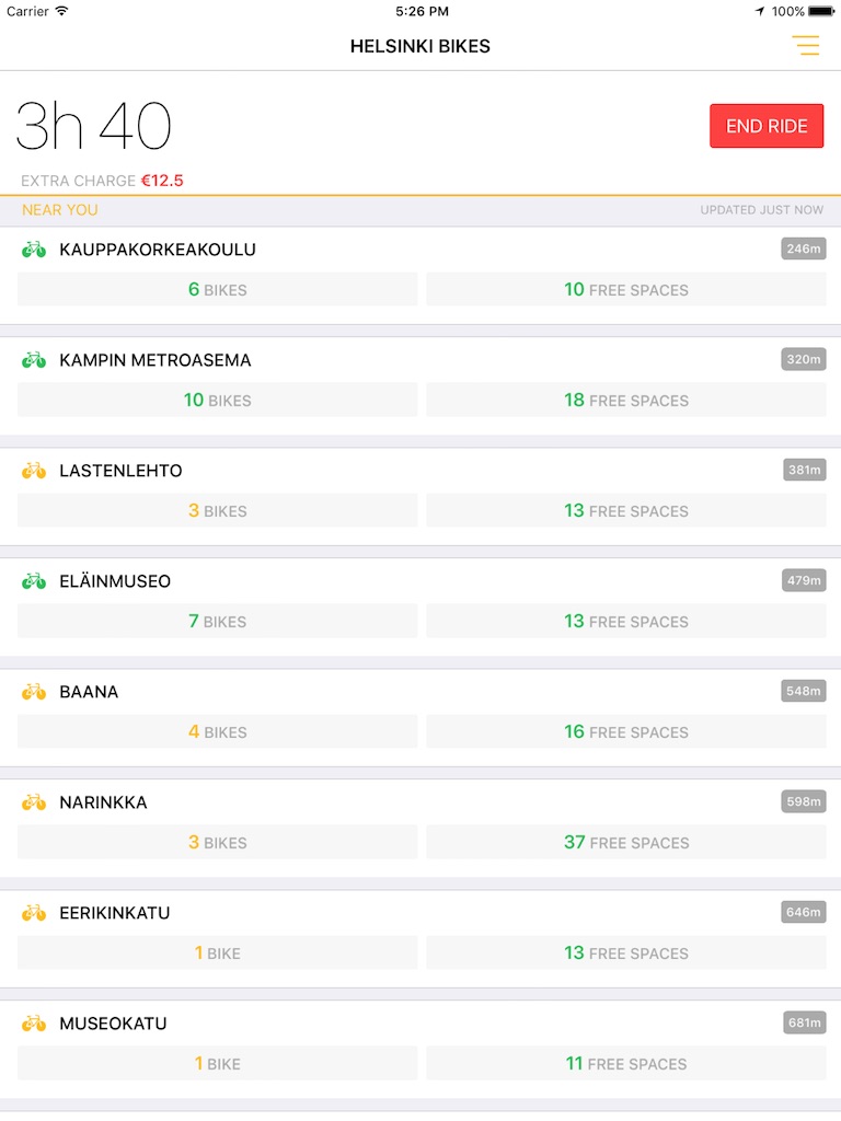 Helsinki Bikes is an easy to use app that helps you find HSLs City Bikes around central Helsinki. It shows all the bike stations near you or anywhere in the map with a realtime update of available bikes and free parking spaces in the stations.