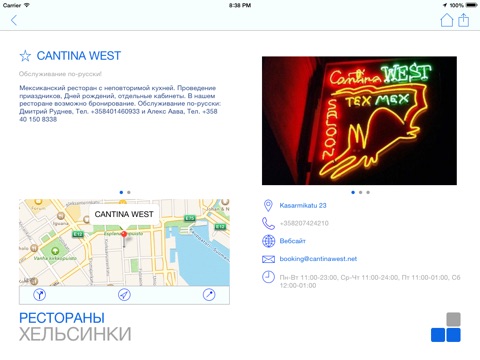 Простой в использовании справочник-путеводитель позволяет найти городские достопримечательности, уютные ресторанчики, модные бутики, развлекательные клубы, бары и многие другие не менее интересные для посещения места.