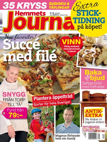 Hemmets Journal är Sveriges ledande veckotidning som varje vecka ger dig mycket att läsa. I våra reportage möter du spännande människor, både kända och okända. Du får rolig, gripande engagerande läsning som berör. Spännande artiklar om hälsa och medicinska nyheter. Hemmets Journal har Sveriges bästa kryss! Varje vecka får du minst 16 sidor där de allra skickligaste konstruktörerna bjuder på en härlig blandning från lätt till riktigt svårt. VÅR BÄSTA MAT heter vår matbilaga som är en guldgruva för dig som gillar mat. Du får också massor av tips för dig själv och ditt hem på tidningens sidor för mode, skönhet, inredning och trädgård.