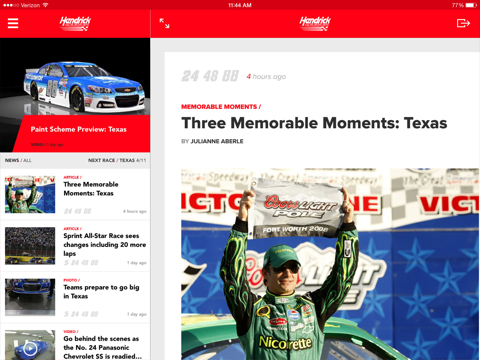 Take the infield experience with you everywhere you go! The Hendrick Motorsports Mobile App gives you an all-access pass to our team and keeps you up-to-date with the latest news, photos and videos.