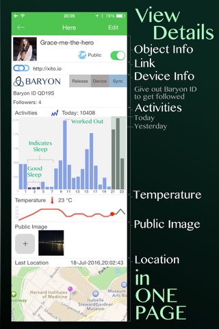 HERE APP for Baryons is an app that utilizes Bluetooth Low Energy Technology and iBeacon Technology. It delivers to the users an experience of being able to monitor "objects" they "own" or "follow" in the first page, and explore "objects" bonded with a public beacon on the second page. Users may bookmark objects to stay up-to-date for whats new for objects they like/bookmarked on the third page. Its lean style made this app highly efficient.