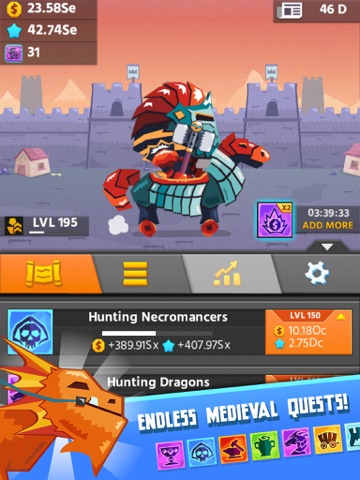 Knighthood awaits, in this idle-clicking adventure. King Cedric the Great steps down from his throne after centuries of battles and now seeks an heir! Prove yourself to be an able knight and successor by gaining wealth, conquering lands and villages, and annihilating goblins, trolls, orcs, and more. Embark on this magical journey!