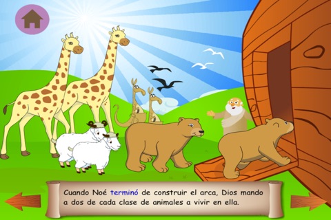 -LEER: Leer o escuchar ( resaltando las palabras) la historia bíblica de la fé que Noé tuvo en Dios. Explora un colorido fondo de ilustraciones y toca dibujos animados que le dan vida a la historia de Noé. Cada historia resalta escrituras y una moraleja que refuerza los conceptos que se han enseñado.