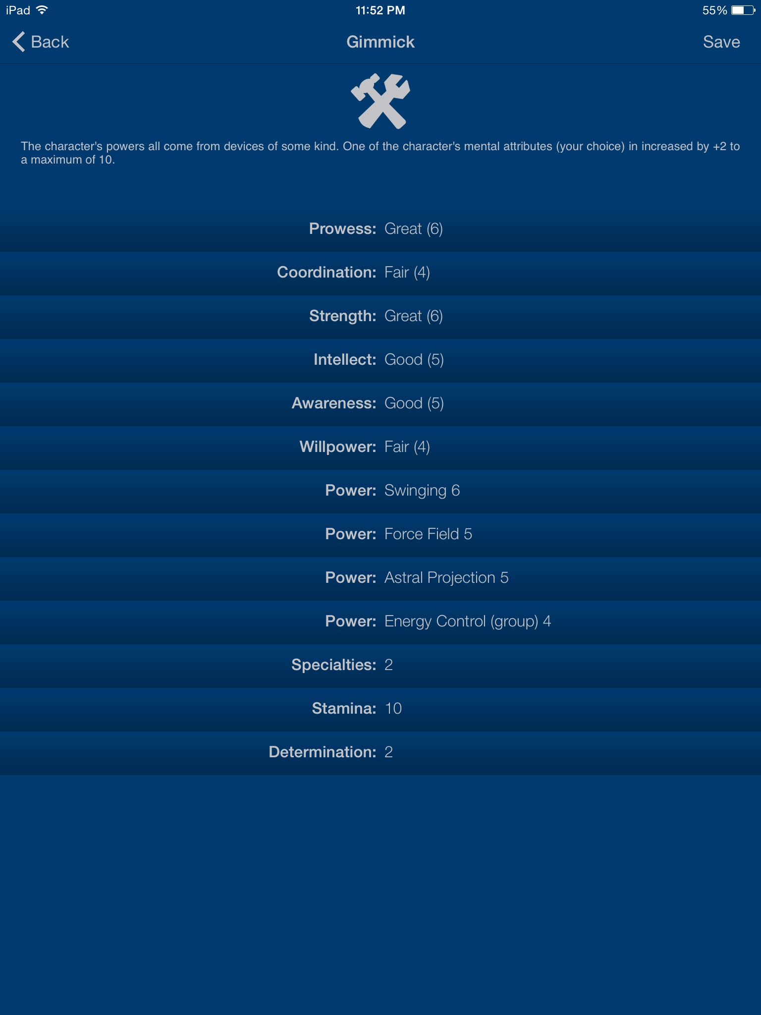 Whether youre whipping up a quick rogues gallery for your players or fleshing out an entire world of superpowered characters, HeroMaker is your key to quickly generating new ICONS characters and NPCs. Just tap on the icon at the top to re-generate a new character, complete with attributes and powers and ready for a name. When you find one you like, you can save it with a single tap and start building a roster of heroes and villains for your next ICONS game.