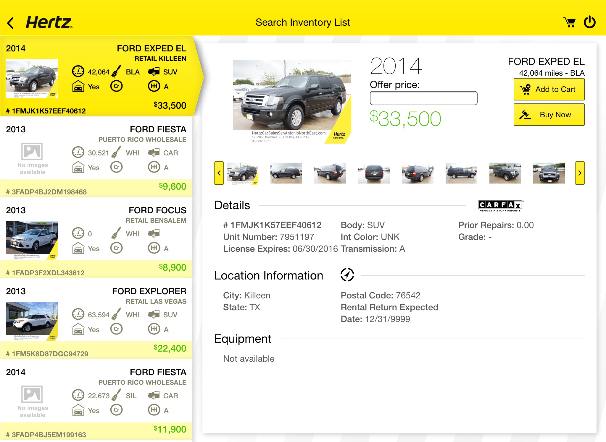 The Hertz Dealer Direct system allows participating dealers to view each stage of the sales process. Dealers search for available inventory, submit an offer to purchase, provide payment information, and print their own gate releases. The system keeps dealers informed each step of the way and allows for the purchase of vehicles based on your schedule and fleet requirements.
