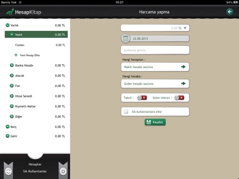 Genel anlamda arayüzü güzel fakat 2 saattir çözemediğim bir şeyler var! Bugün nisandan itibaren başlayan taksitleri girince borçlarda görünmüyor. İpad ayarlarından tarihi nisana aldım yine görünmedi. Anca bugünden bir ödeme tarihi belirtince borçlar görünüyor. Ayarlara girince geri hesap menüsüne dönemedim, programı kapatıp açmak durumunda kaldım.( çıkış tuşu işlemiyor )