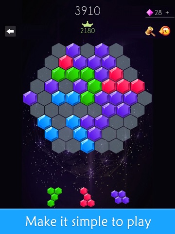 Hex 1010! is an puzzle game. The hexagon board is a fun challenge for both beginners and the advanced puzzle addict.