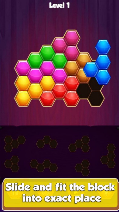 • Match hexa blocks exactly in this addicting brain training puzzles game.