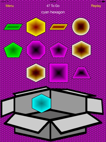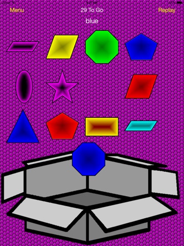 To use you set if you want to do colors, shapes or colors and shapes. Once you are in the game part you drag and drop the the right object into the box. Turn on sound for verbal instructions.