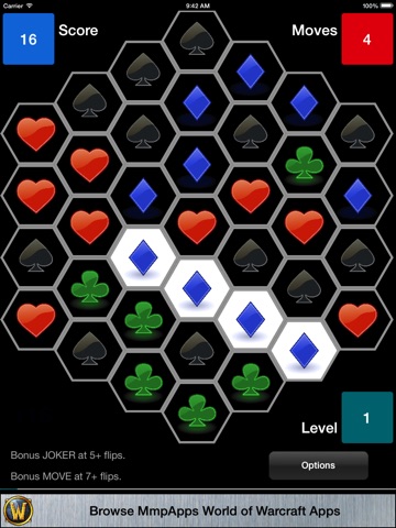 Longer lines of like-symbols score higher than smaller lines. Watch the progress bar for level advancement.