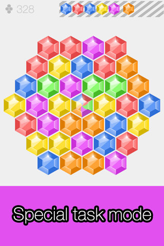 - Zen:To crush the hexblocks as many as possible in 60 seconds and 30 moves.