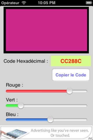 HexColor génère le code hexadecimal des couleurs choisies en glissant 3 sliders (bleu rouge vert)