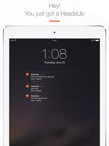 Hey! HeadsUp is the first free platform to allow you to schedule text messages, phone calls, emails, and alerts in order to remind others of the things they need to do. You can schedule messages, voice recordings, or even pictures and have them sent to any device, even if they dont have HeadsUp!