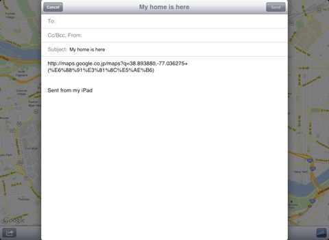 If you would like to change the pin name, press page curl button and changed "Pin Name". By using this, you can tell the exact place even if it is not your home via email!