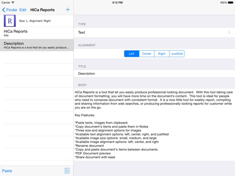 HiCa Reports is a tool that let you easily produce professional looking document. With this tool taking care of document formatting, you will have more time on the document’s content. This tool is ideal for people who need to compose document with consistent format. It is a nice little tool for weekly report, compiling and sharing information from web searches, or producing professionally looking reports for customer while you are on the go.