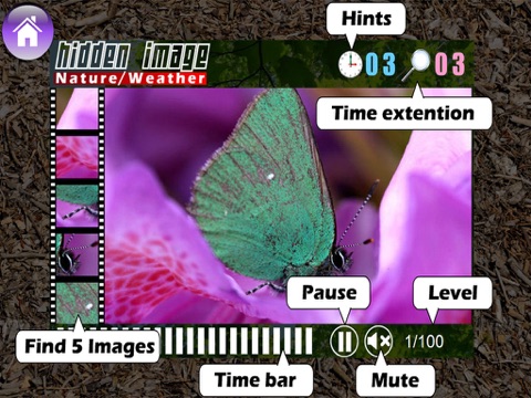 Hidden Image is a challenging visual photograph game. The objective is to find 5 images within an image under a given time.
