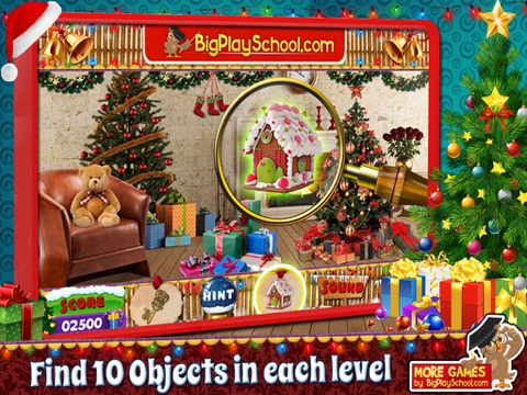 PlayHOG presents My Christmas Tree, a Free find object game where we have carefully hidden 10 objects per level in a total of 25 levels to give you 250 objects to find.