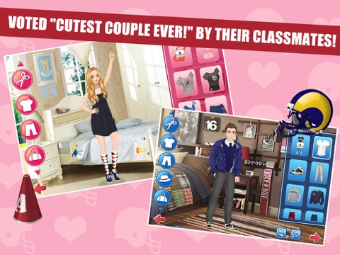 With high quality graphics and the cutest outfits to mix and match, High School Sweethearts! Dress up will make you fall in love! From homecoming to the big game or just hanging out, keep the hottest couple in school looking hot and stylish, no matter what the occasion!