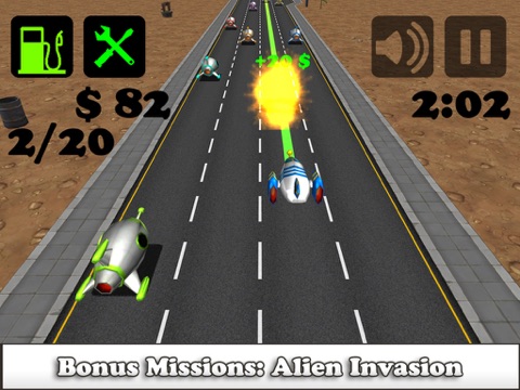 In Highway Run you play a convertible driving gangster who fulfills orders from his evil underworld gangster boss named Le Boss. Every mission starts with a short briefing as part of your funny story and launches you to bring madness and destruction to the highway streets. There are different mission types like high speed pursuits, bodyguard or destruction tasks, driving limousines, battle tanks or even flying saucers and of course bringing Le Boss children to school!