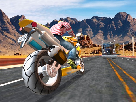 You never dare a highway bike race so fast in the real world! Control your motorcycle with incredible fast speed during traffic rush time! Tap turbo boost to increase your bike speed. This endless highway bike escape game is all about having fun! Power up with each level, and with a variety of sports bike models to choose from, you can outdo your expectations in performing stunts. Boast your riding and racing skills! Don the coolest gear to match your prowess with style.