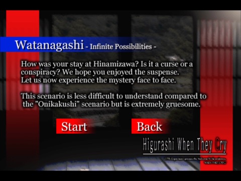 Please enjoy the experience of the village of Hinamizawa in 1983 through this new iPhone application!