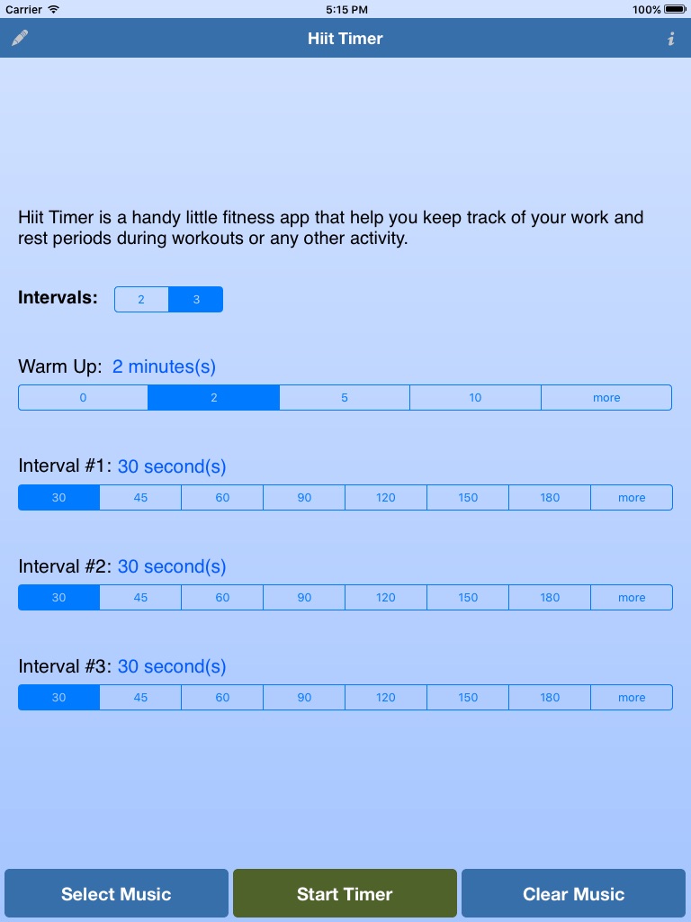 Nice app but would be perfect id there was a sound/ a bip at the beginning of each interval workout. Otherwise very simple to use. Nice