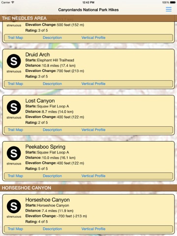 Canyonlands National Park is an amazing park in southeast Utah. It contains two diverse river canyons and unique slickrock formations. If you are planning a hiking trip to the park, this application is for you. It provides easy-to-use day hike information for most of the hikes in the park whether you are hiking to Peekaboo Spring or Mesa Arch.