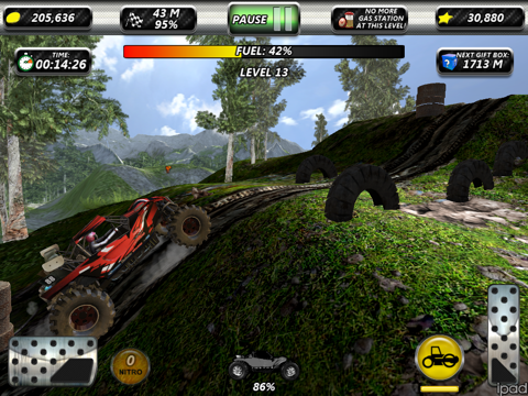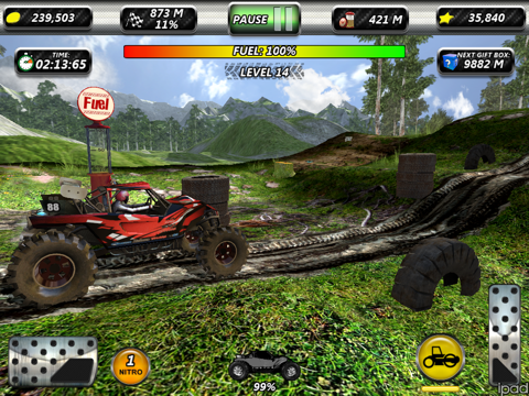 Jump in to your racing vehicle. Race to the finish as fast as possible. Collect bonus coins and stars. Open gift boxes! Upgrade parts of your racing vehicle and helping features. Face the hills getting harder and harder.