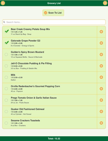 A customizable grocery list lets you can add, edit and change your list at any time while logged on! Your grocery list is synced with your stores website. View the total cost of items in your list. Use our barcode scanner to make adding items to your list.