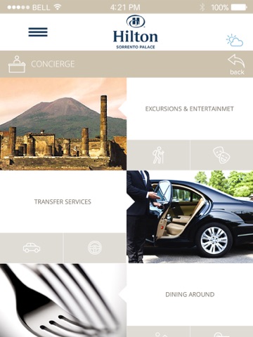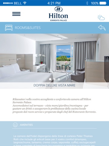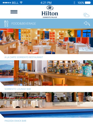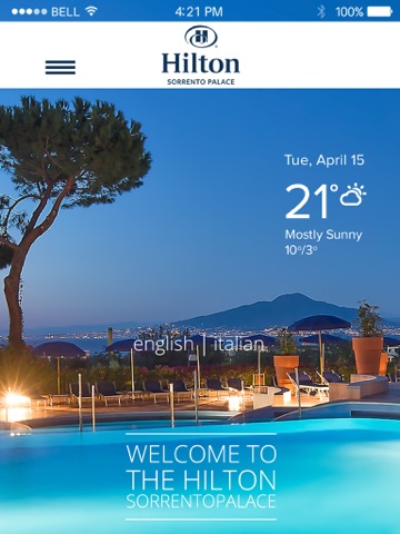With the Hilton Sorrento Palace Official App you can: book hotel services; discover the most fascinating tourist itineraries; be updated about events in Sorrento and its surroundings ; access maps ; check weather conditions in Sorrento.