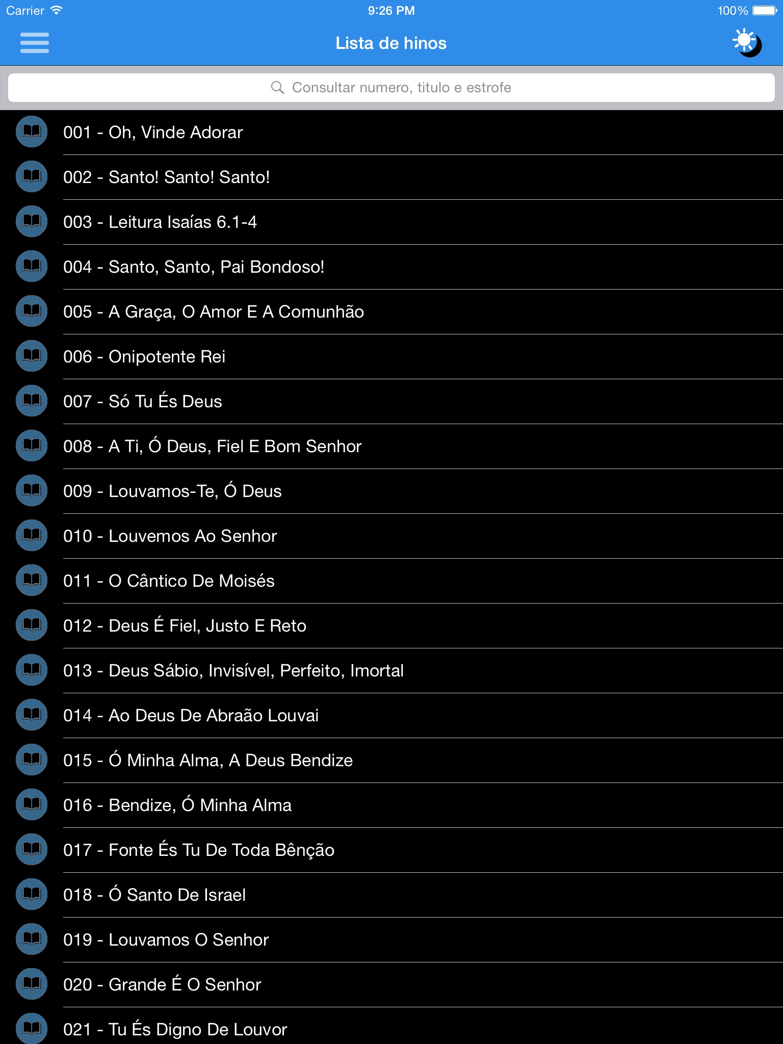 O aplicativo tem funcionalidades para com marcação de hinos favoritos, com layout dinâmicos do modo diurno e noturno, menu acessível.