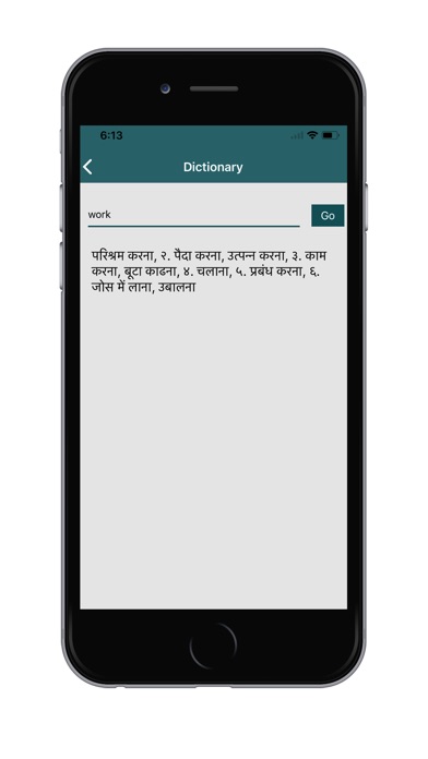 The app contains Offline Hindi Dictionary too. Where your can find the meaning of any English word in Hindi. Its English to Hindi dictionary, so you can only get the meaning of English word in Hindi. You can improve your vocabulary using English Hindi Translator and Dictionary.