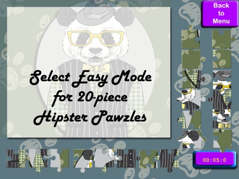 A "pawzle" is a paw-themed puzzle, and all of our hipsters happen to have paws, including cats, dogs, lions, tigers, bears and rabbits! Hipsters are known for their crazy hats, their patchwork vests, their colorful bow ties and even tobacco pipes.