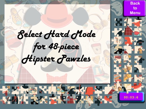 HARD mode - 30-piece puzzles (iPhone); 48-piece puzzles (iPad)