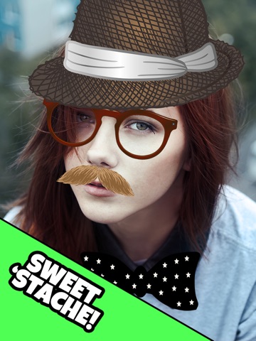 2- Transform into a Hipster by adding glasses, mustaches, or bow ties. Scaling and rotating is supported.