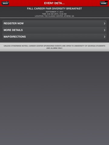 Designed to assist employers in their recruiting efforts, the UGA Career Centers hireUGA app features a calendar of upcoming career fairs, a directory of the Career Centers Employer Relations Team members, contact information (including phone, email and maps/directions) for information session venues, Athens area hotels, local dining options and more!
