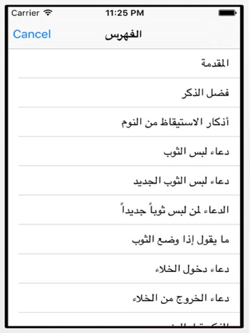 فهرس الكتاب حيث تستطيع الوصول للدعاء بسرعة وسهولة