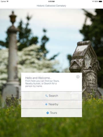 Use this app to search the records of those interred or entombed in Historic Oakwood Cemetery. This app also allows you to view your loved ones Living Memorials, Photos, Videos and Condolences shared by family and friends. All of this with GPS Navigation functionality to allow you to locate loved ones interred at Historic Oakwood Cemetery. If you would like to submit a Living Memorial, Photo or share a Condolence, please visit http://historicoakwoodcemetery.org/ and search for the burial records of your loved ones.