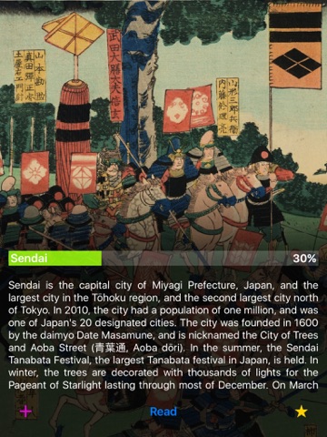 Sendai is the capital city of Miyagi Prefecture, Japan, and the largest city in the Tōhoku region, and the second largest city north of Tokyo. In 2010, the city had a population of one million, and was one of Japans 20 designated cities. The city was founded in 1600 by the daimyo Date Masamune, and is nicknamed the City of Trees and Aoba Street (青葉通, Aoba dōri). In the summer, the Sendai Tanabata Festival, the largest Tanabata festival in Japan, is held. In winter, the trees are decorated with thousands of lights for the Pageant of Starlight lasting through most of December....