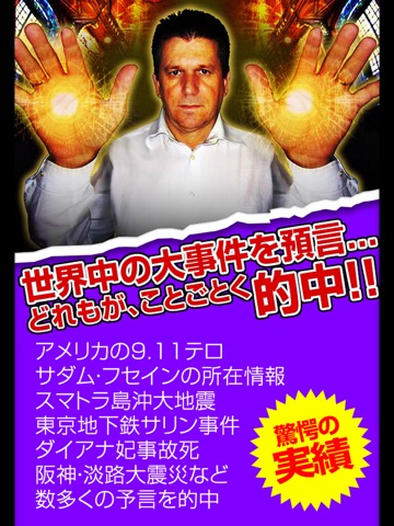It has allowed to hit location information of Saddam Hussein and September 11 in the United States , the major earthquake off the coast of Sumatra , Tokyo subway sarin gas attack , Princess Diana accidental death , such as the Great Hanshin-Awaji Earthquake , the prophecy of many , most attention is now all over the world is a prophet that is .