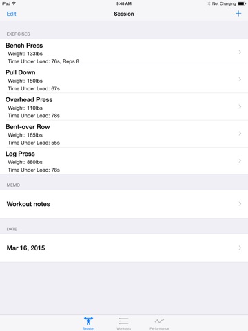 High-intensity training (HIT) is well-recognized as one of the most effective methods of strength training. HIT Log Pro assists your training by logging the weight used in each exercise and measuring the time under load (also known as time to failure) to track your progress. Each workout is recorded by date, and progress for each exercise is shown graphically. Previous workouts can be entered manually to complete your record, and all data is backed up to the cloud.