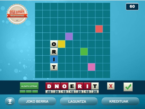 Word game in which you have to form words in Basque using the letters given and sticking to the rules of the game.