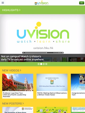 The official HKU U-Vision app is developed to enable users to quickly access the content that is broadcast on U-Vision’s channel. U-Vision is a communications platform used for sharing information about upcoming events and activities, as well as recapping past experiences and wonderful moments around the University of Hong Kong (HKU)’s campuses. Various user-uploaded video and poster content that is normally displayed on the TVs across the HKU campus will be viewable on your mobile through this app.