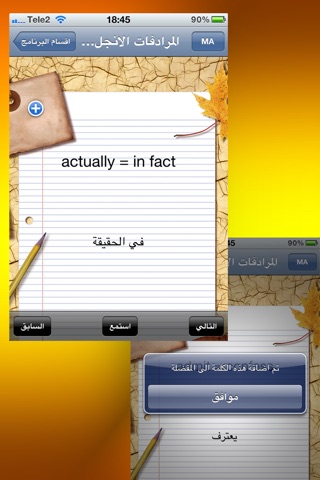 امكانية اضافة الكلمات التي تهمك الى المفضلة مع امكانية حذف الكلمات التي لا تريدها من المفضلة