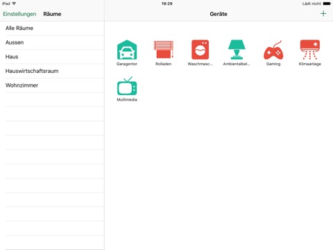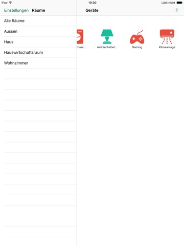 - Next, create a switchable object by tapping the plus sign in the top bar. Now press the button "Add device from CCU" and chose a device or enter the devices HomeMatic ID including the channel (e.g. LEQ1234567:1) manually. Enter a name and a group (if needed) and youre ready to go. With the group setting you can also sort the appeariance of the devices in the UI)